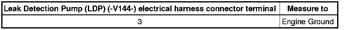 - Using a multimeter, check the Leak Detection Pump (LDP) (-V144-) electrical harness connector terminal 3 to ground for voltage.
