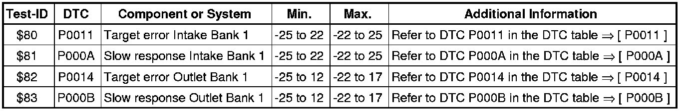 - If any of components or systems fail to meet the specified values. Refer to Diagnostic "Mode 03: Interrogating Fault Memory" to check for stored DTC's or the corresponding diagnostic repair procedure => [ Diagnostic Mode 03 - Read DTC Memory ].