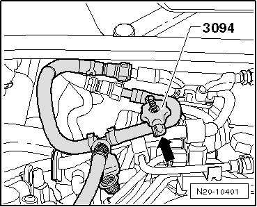 - Clamp off the hose to the EVAP canister purge regulator valve using (3094)- arrow -.