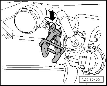 - Disconnect the ventilation line - arrow - to the Evaporative Emission (EVAP) canister purge regulator valve (N80) in the engine compartment.