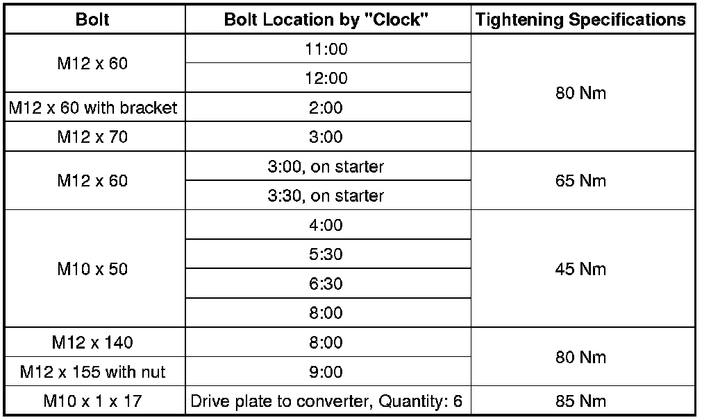 => [ Transmission to Engine Bolts, 3.2L and 3.6L Gas Engines ]
