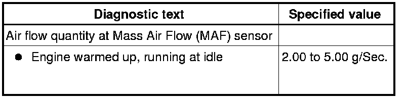 - Using the scan tool, Check the air flow quantity of the Mass Air Flow (MAF) Sensor (G70) at idle: