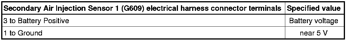 - Using a multimeter, check the Secondary Air Injection Sensor 1 (G609) electrical harness connector terminals for voltage.