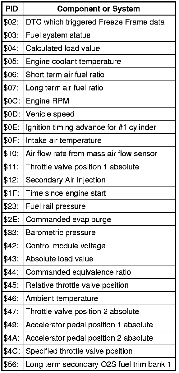 • Depending on scan tool and protocol used, the information in diagnostic mode 02 may be referred to by different names such as Test-ID (TID), Hex-ID, Component-ID (CID), or On-Board Diagnostic Monitor Identifier (OBDMID).