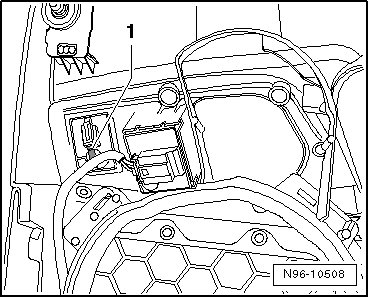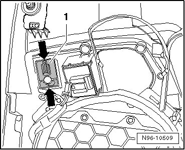 - Disengage retaining tabs - arrows - and remove Rear Lid Remote Lock Key Switch - 1 - from door trim.
