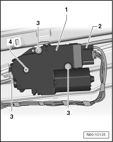- Insert a hex wrench into the opening in the bolt - 4 - for the drive - 1 -.