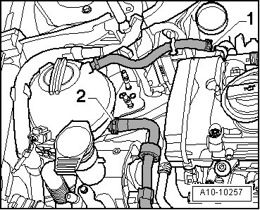 - Remove the coolant hoses - 1 and 2 -.