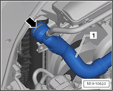 - Remove the bolt - 1 - and remove the charge air pipe downward.