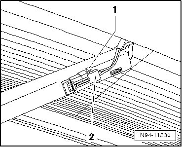 - Pull the high-mounted brake lamp in the - direction of the arrow - back out of the mounts - 1 -. Be careful of the connected wires.