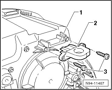 - Insert the new repair tab - 2 - into the mount - 1 - on the headlamp and secure the tab with the bolts - 3 -.