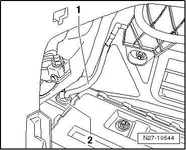 - Remove the bolt - 1 - and the bracket - 2 -.