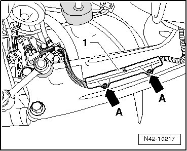 - Remove the retainer - 1 - by pressing out the inner pins - arrows A -.