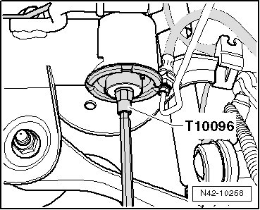 • The locating pins (T10096) may only be tightened to a maximum of 20 Nm, otherwise the threads of the locating pins will be damaged.