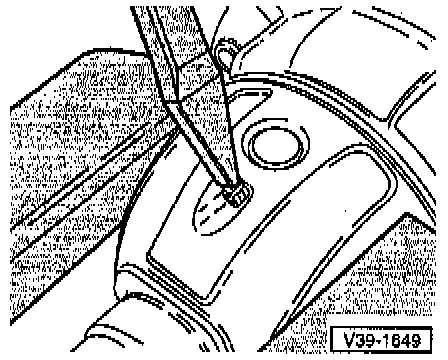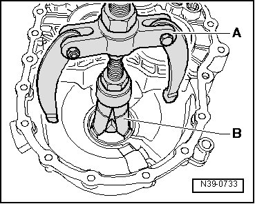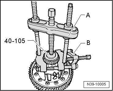 - Press the differential bevel gear - arrow A - up to the first small differential bevel gear.