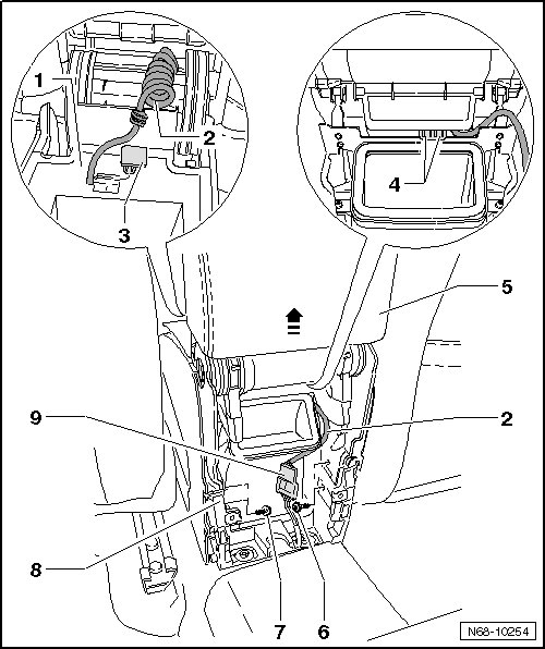 - Loosen connector - 9 - from armrest frame - 8 - and disconnect.