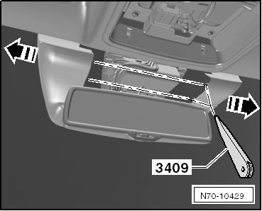 - Carefully pry the "vanity mirror light" out of the headliner using the trim removal wedge (VAS 3409) or a screwdriver.