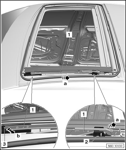 - Sunroof Glass Panel, Removing, refer to => [ Sunroof Glass Panel ] Sunroof Glass Panel.