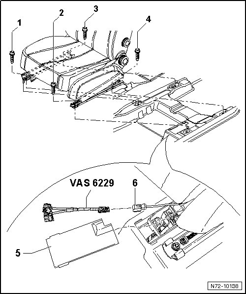 - Remove airbag adapter (VAS 6229) / airbag adapter (VAS 6281).