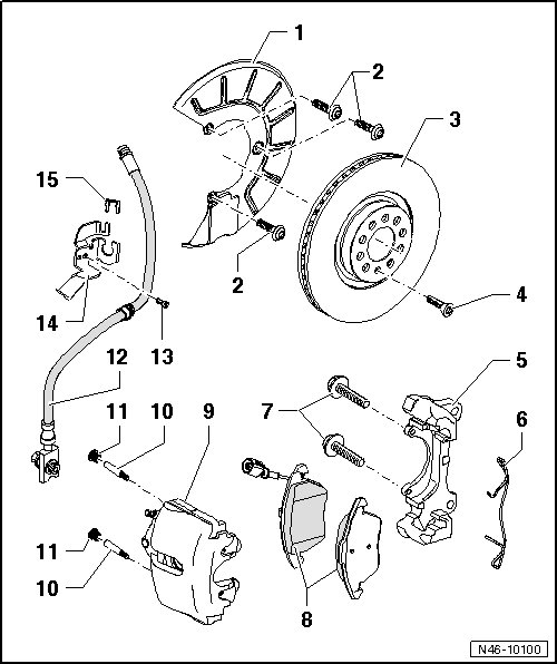 • Removing and installing, refer to => [ Brake Pads, FN 3 ] Brake Pads, FN 3