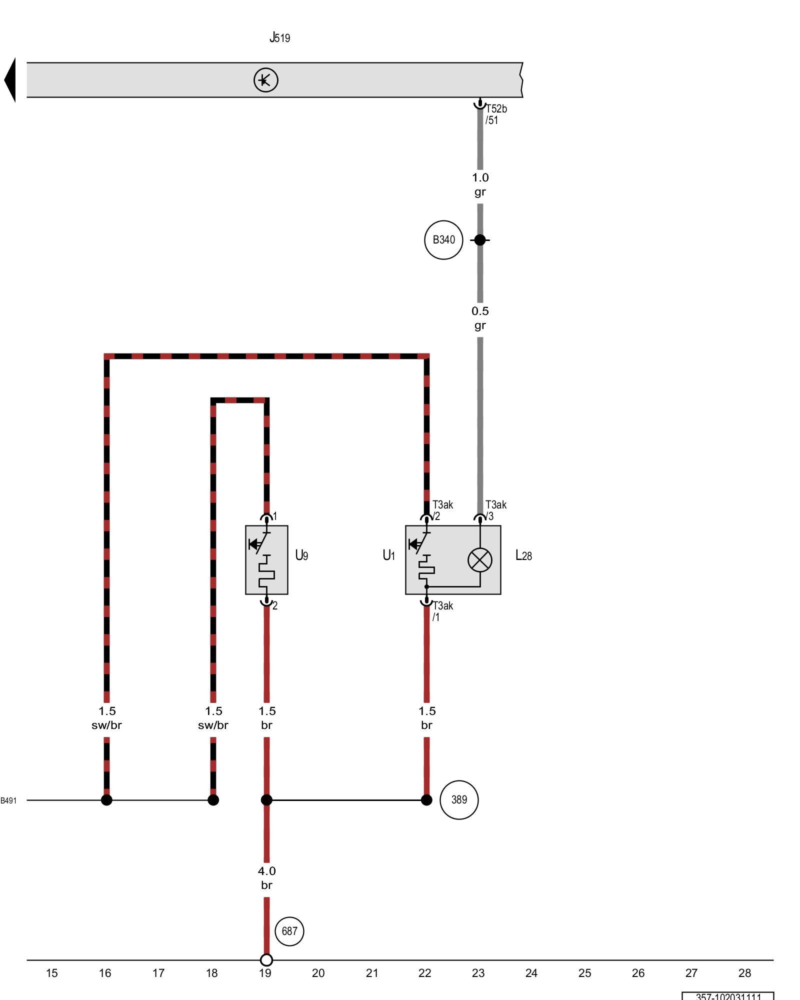 (B491) - Positive connection (75) (in interior wiring harness)