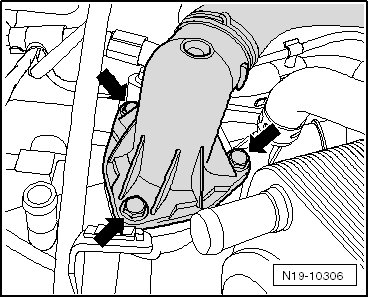 - Remove the bolts - arrows - and then remove the thermostat cover with coolant hose.