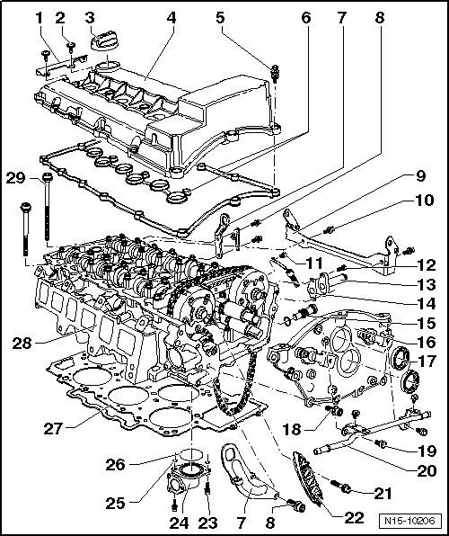 • The plastic protectors installed to protect the open valves must only be removed immediately before installing the cylinder head.