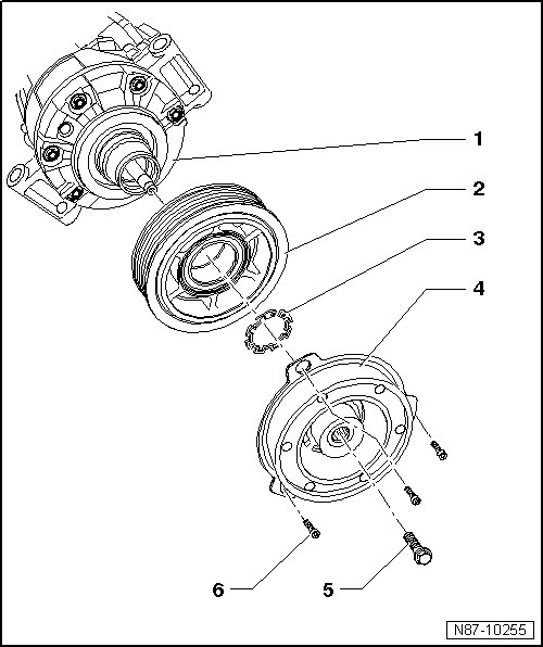 - Remove the ribbed belt pulley - 2 - from the A/C compressor.