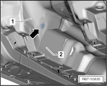 - Loosen the underbody trim panel - 1 and 2 - in the valve area.