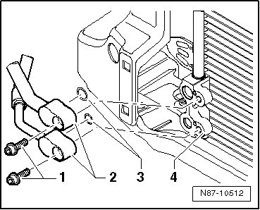 - Remove the refrigerant lines - 2 - from the connection - 4 - on the condenser.
