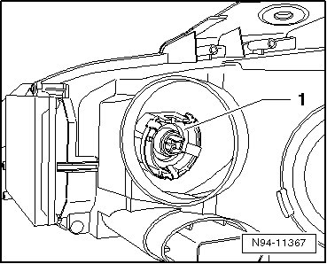 - Press the cornering lamp bulb - 1 - into the illustrated installation position in the reflector.
