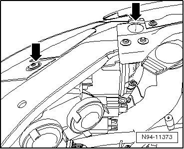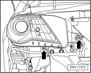 - Loosen both bolts - arrows - on the front of the headlamp.