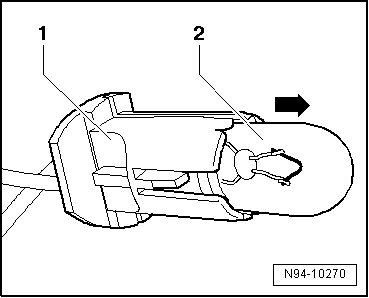 - Remove the sidemarker lamp bulb - 2 - in the direction of the - arrow - from the bulb socket - 1 -.