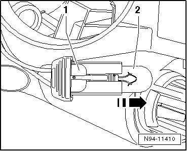 - Pull the socket and parking lamp bulb - 1 - back out of the reflector. Be careful of the connected wires.