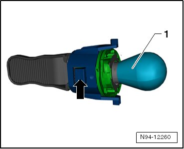 - Turn the handle - 1 - to the left in the - direction of the arrow - and remove together with the turn signal bulb from the headlamp.