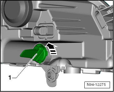 - Turn the holder - 1 - in - direction of arrow - and remove it together with the turn signal bulb from the headlamp housing.