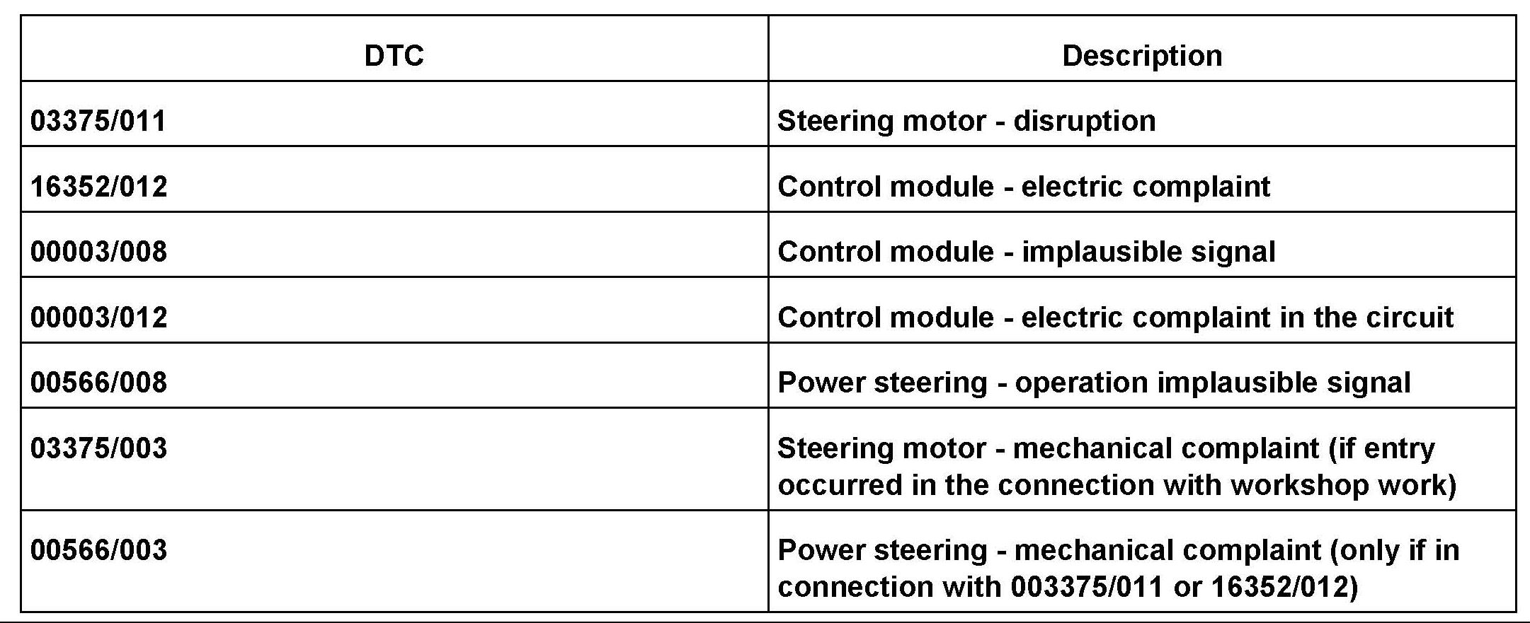 Insufficient Steering Assistance - Warning Light ON