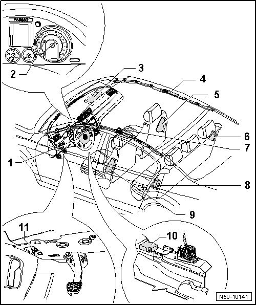 3 Airbag igniter 1 on front passenger side -N131- and Front Passenger Airbag Igniter 2 -N132-
