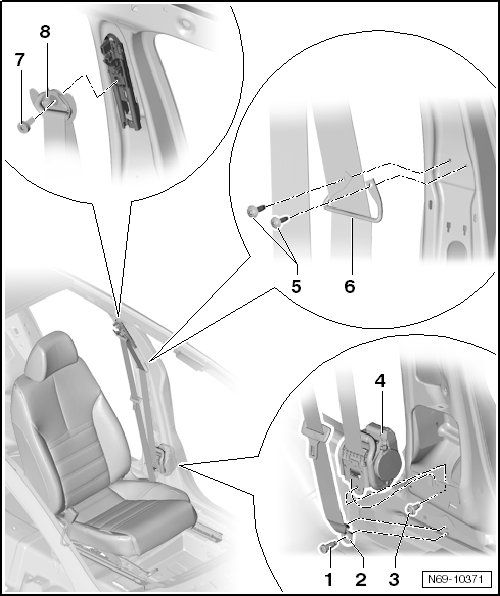 4 - Driver Seat Belt Tensioner Igniter 1 -N153- or Front Passenger Seat Belt Tensioner Igniter 1 -N154-