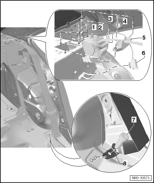 2 - Left Rear Seat Belt Tensioner Igniter -N196- or Right Rear Seat Belt Tensioner Igniter -N197-