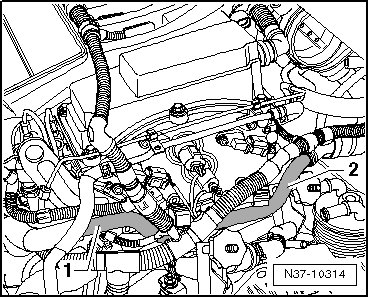 - Remove the coolant lines - 1 and 2 - from the engine and disengage the wiring harness.