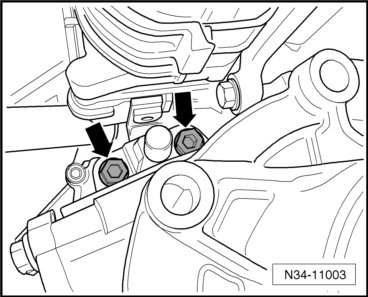 - First, tighten the bevel box new bolts - arrows - hand tight and then tighten them to specifications. Tightening specification: 40 Nm + an additional 90° (1/4) turn.