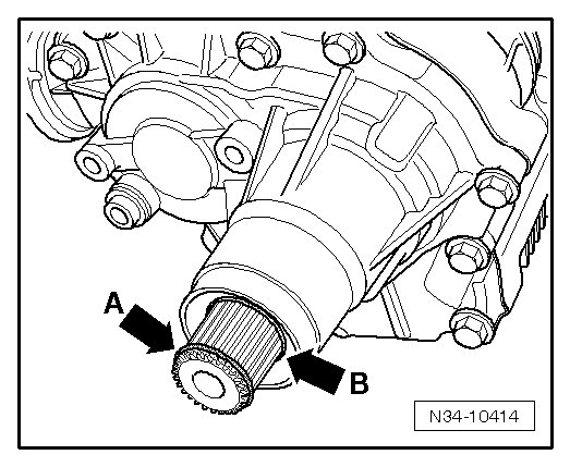 - Install a new circlip - arrow A - and a new O-ring - arrow B - on the right flange shaft.