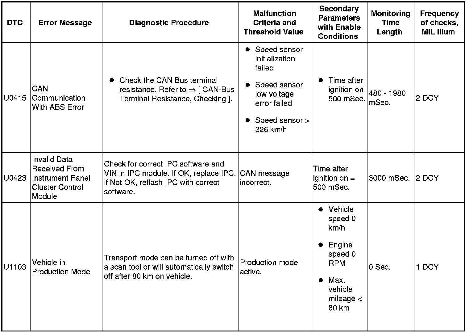 DTC Tables