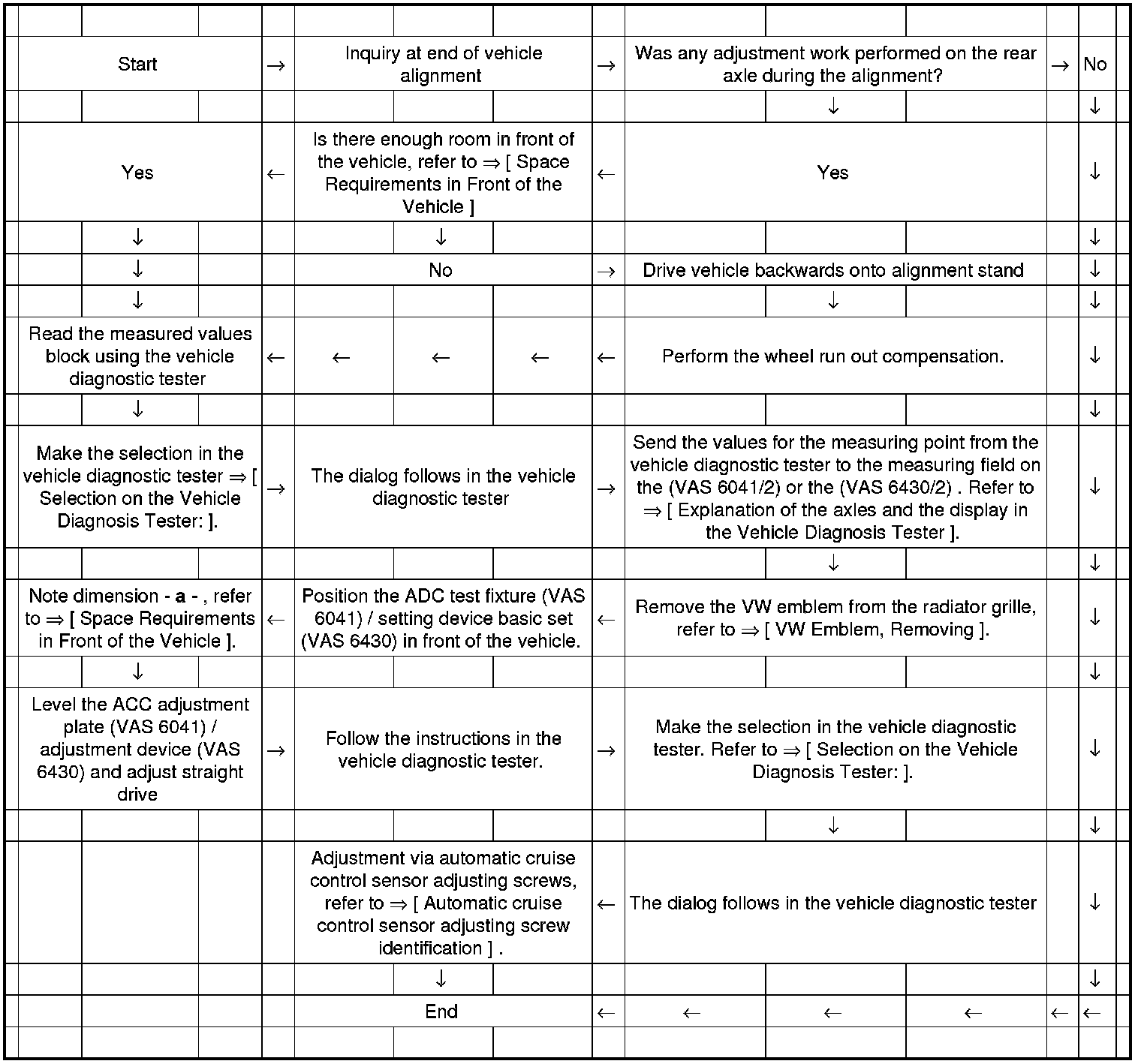 Distance - a - is the distance between the automatic cruise control sensor mirror and the ADC test fixture (VAS 6041) / setting device basic set (VAS 6430) measuring field