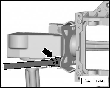 - Remove the lower shear bolt - arrow - using the special socket (T10424).
