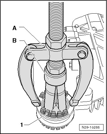 - Remove the bonded rubber bushing - 1 -.