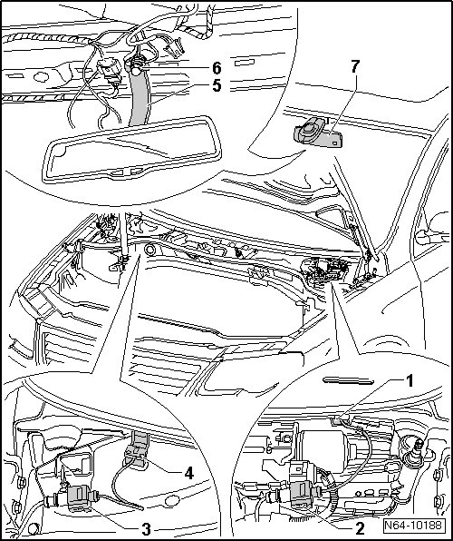 - Disconnect the connections - 2 and 3 - in the plenum chamber and unclip them from the mount. Kapton wires - 1 and 4 - must be secured to windshield with adhesive tape.