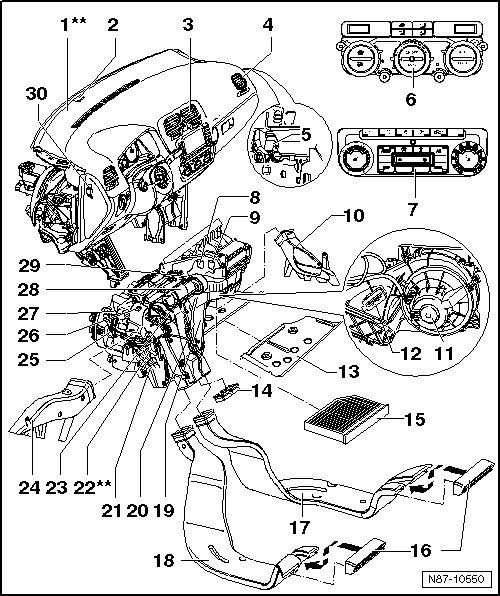 Removing and installing, refer to => [ Dust and Pollen Filter ] Service and Repair.