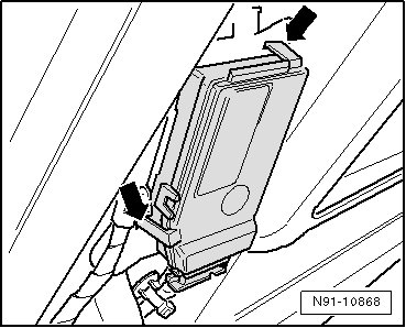 - Press locking mechanism of harness connector - arrows - and disconnect it.