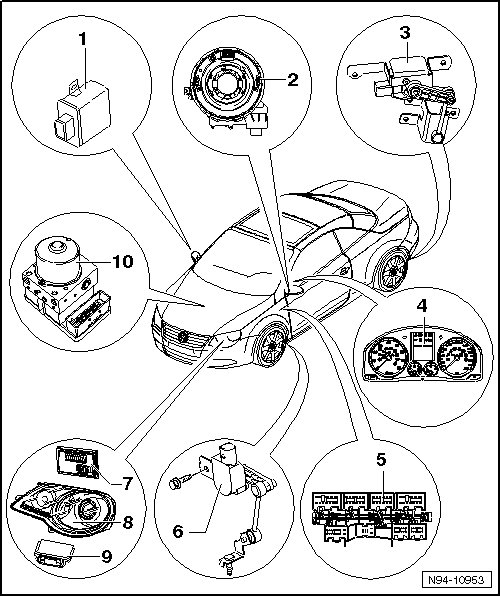• Headlamp Range/Cornering Lamp Control Module (J745) , coding, refer to => [ Cornering Lamp and Headlamp Range Control Module (J745) ] Cornering Lamp and Headlamp Range Control Module (J745).